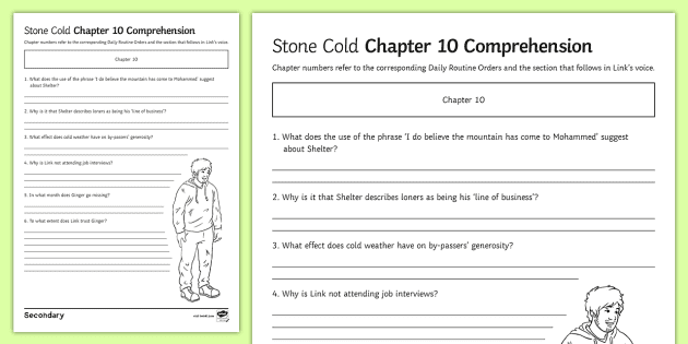 Stone Cold Chapter 10 Comprehension Worksheet Worksheet